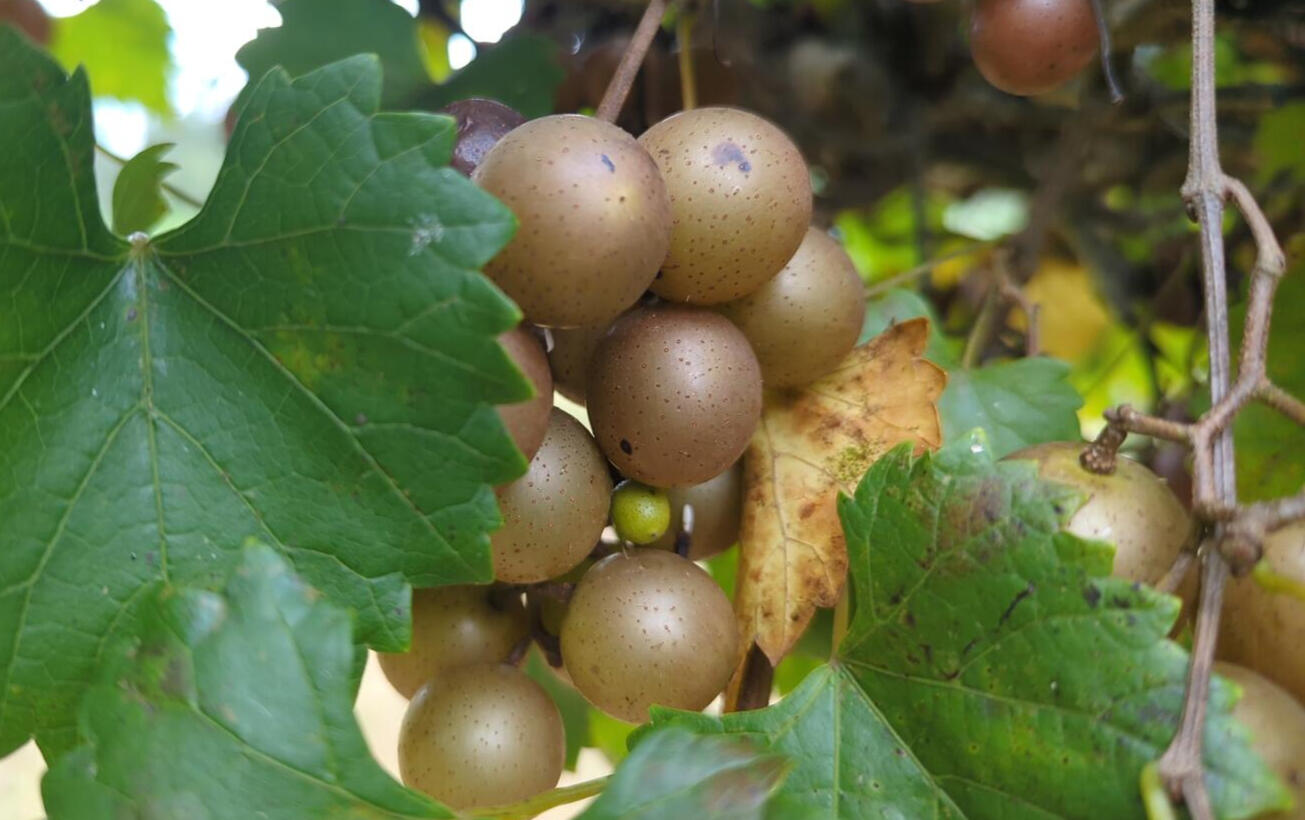 "Come and enjoy 2 acres of fresh, sweet muscadines at our U-pick farm! Eat as much as you like and pay only for what you take home.